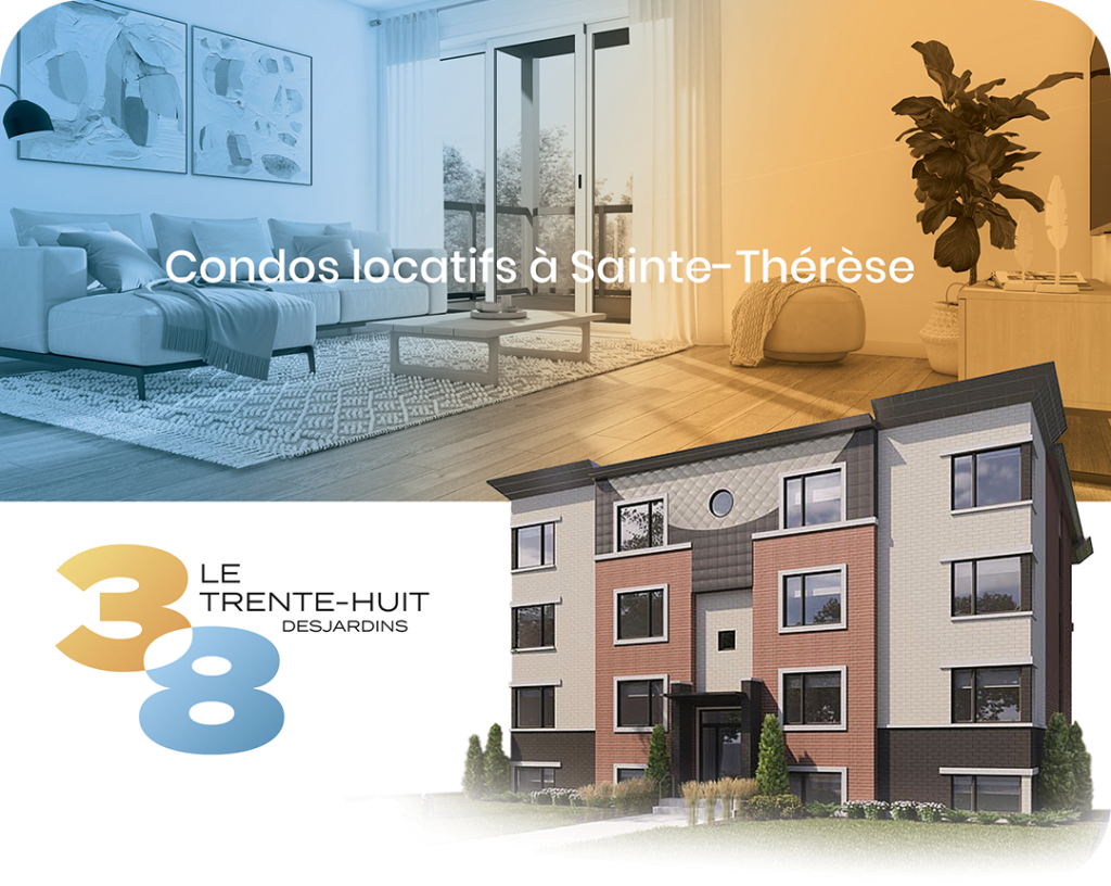 Au cœur de Sainte-Thérèse, Le Trente 8 offre des condos locatifs où luxe et commodité se rejoignent. À deux pas de la gare et des services essentiels, vous vivrez dans un lieu privilégié qui allie design architectural moderne et accessibilité simplifiée.